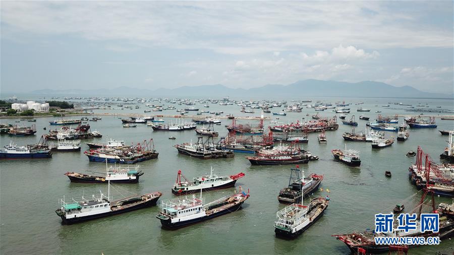 渔港里的渔船准备出海(8月16日无人机拍摄)。 新华社记者 周自扬 摄