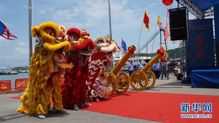 8月16日,演员在开渔节上表演舞狮。 新华社记者 周自扬 摄