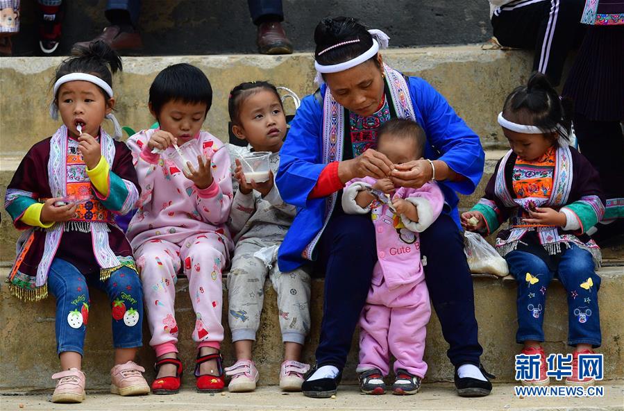 10月28日,在广西融水苗族自治县拱洞乡龙令村,小朋友们参加庆祝丰收活动。新华社记者 黄孝邦 摄