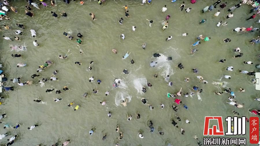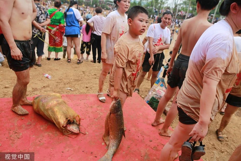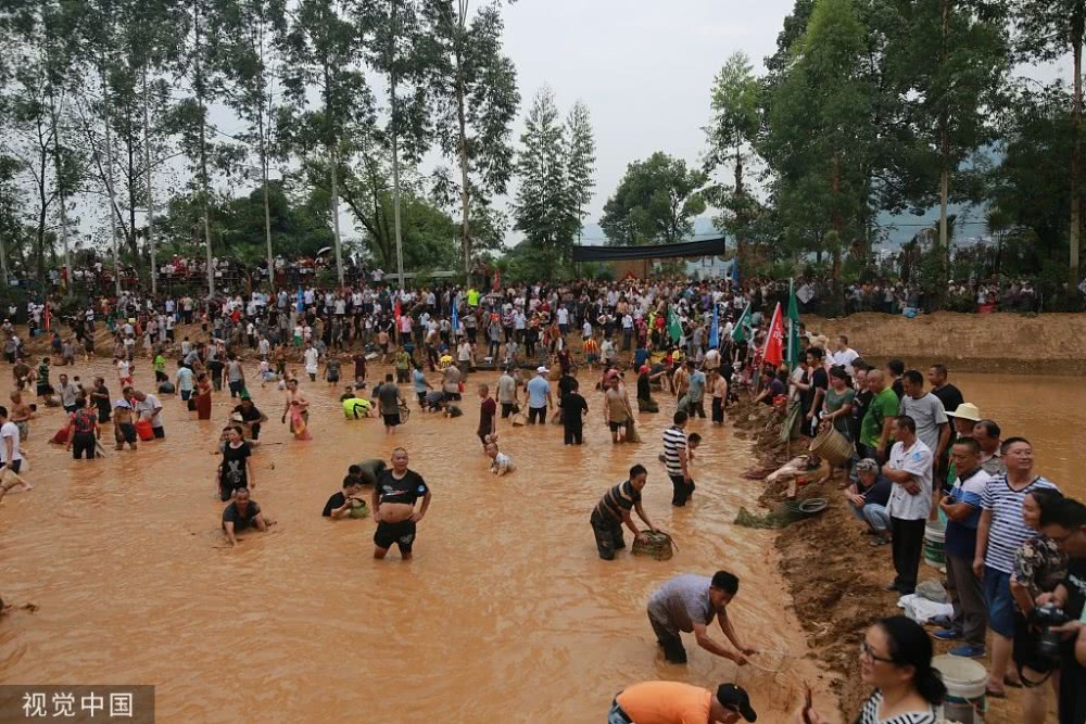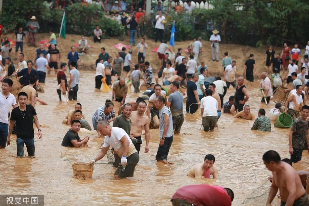 有人撒鱼网,有人用网兜,还有人直接徒手捉鱼,手段各异引路人围观。
