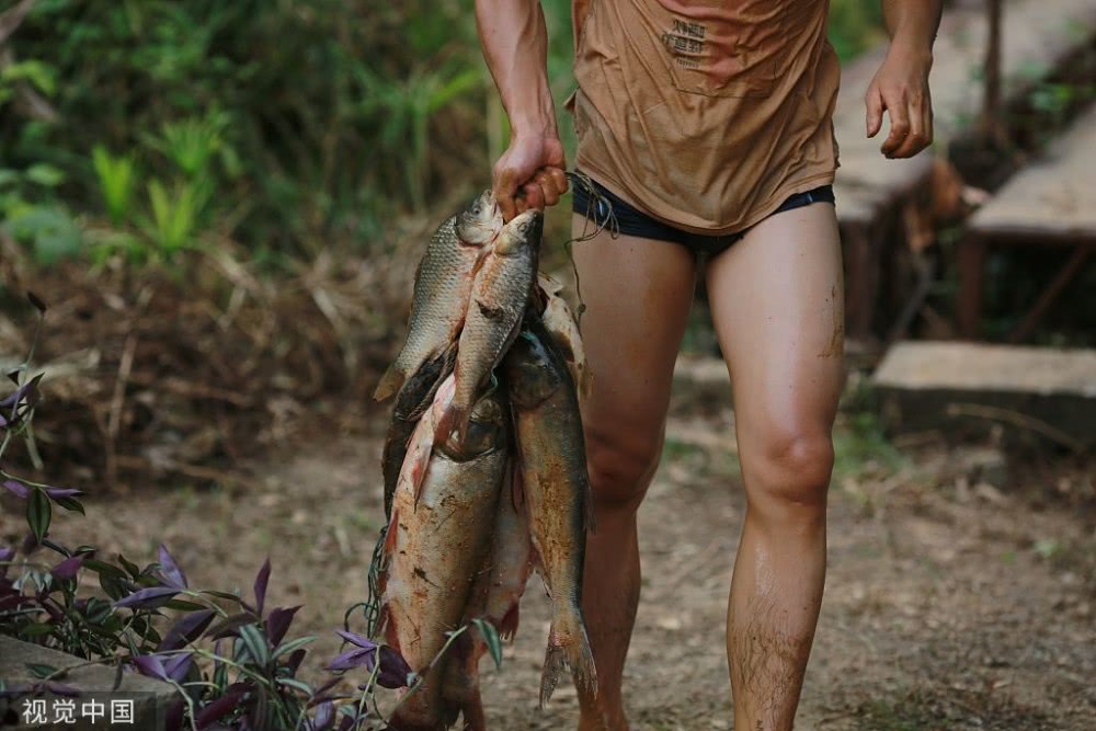 现场上演了一场抢鱼大战。