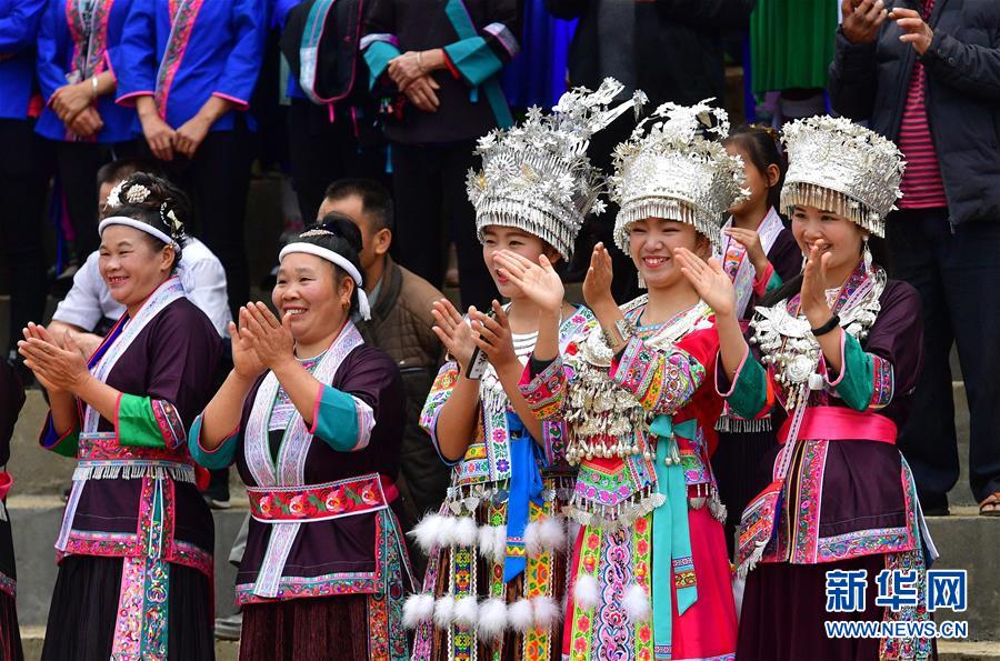 10月28日,在广西融水苗族自治县拱洞乡龙令村,各族群众观看民俗表演。新华社记者 黄孝邦 摄
