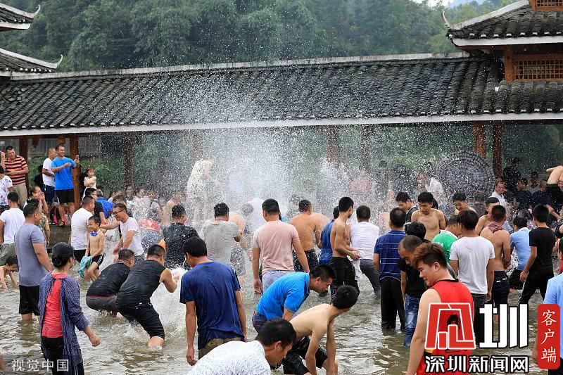 2019年7月8日,当日是农历六月初六,广西柳州市融安县长安镇安宁村大袍屯苗族村寨举行一年一度的苗族“闹鱼节”,祈福丰收。
