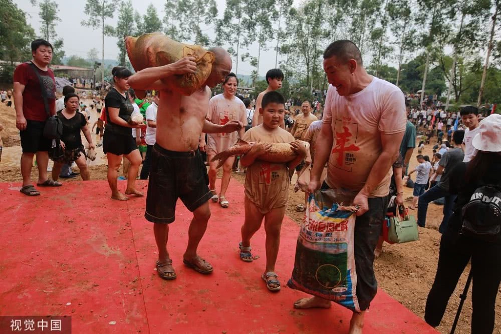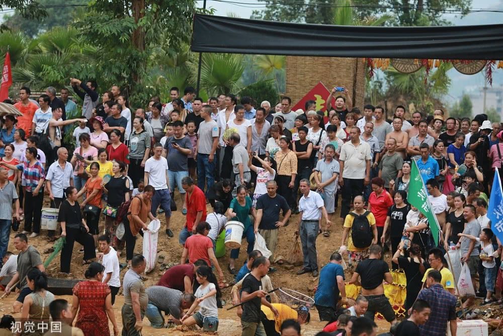 2019年9月7日,重庆,涪陵区晒秋捉鱼活动在红酒小镇举行,现场上演抢鱼“大战”。