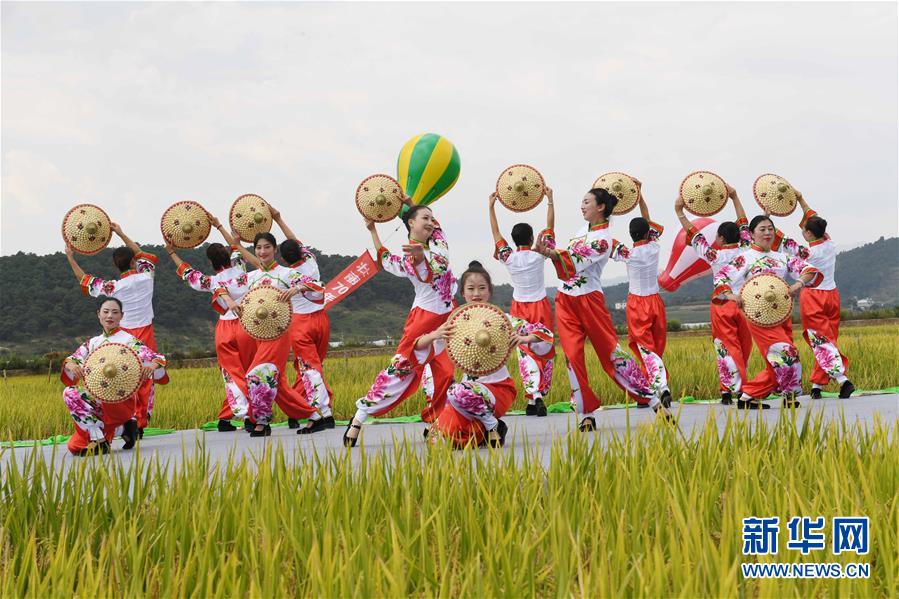 9月15日,人们在田野里表演舞蹈《在希望的田野上》。 新华社记者 杨宗友 摄