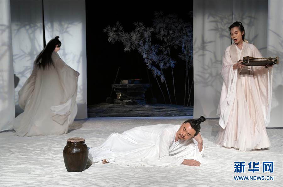 9月16日,演员在话剧《广陵绝》中表演。 当日,话剧《广陵绝》在北京人艺实验剧场上演。 新华社记者 金良快 摄