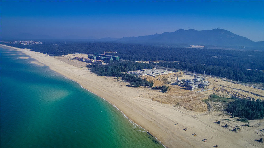 2018年 1月18日,海南昌江,航拍棋子湾群升海滩酒店项目进行海岸带复绿工程。袁琛/视觉中国