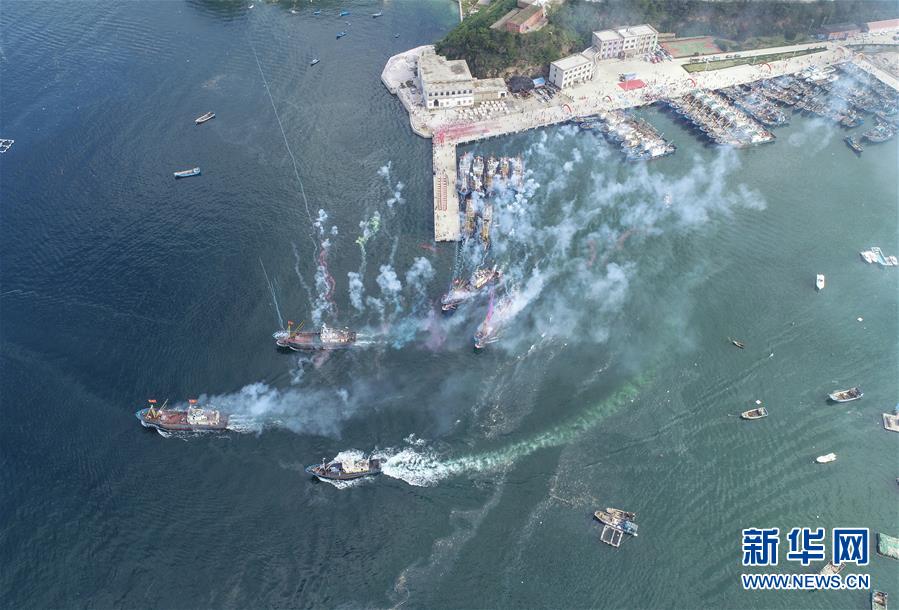9月1日,第五届中国海洋岛渔场开渔节上,渔船驶向大海。 当日,第五届中国海洋岛渔场开渔节在辽宁长海县海洋岛大滩港区举行。经历四个月伏季休渔期的渔民乘船在锣鼓声中驶向大海,奔赴渔场作业。 新华社记者 龙雷 摄