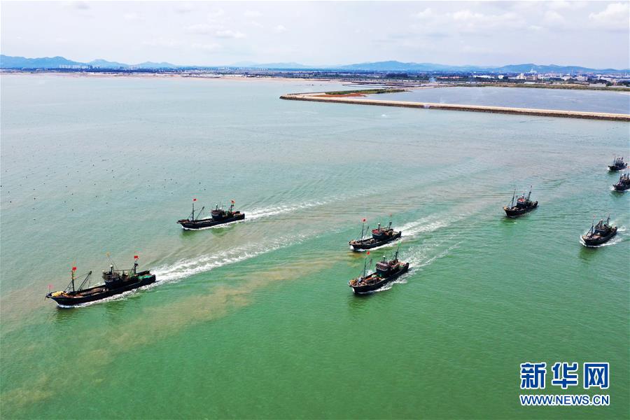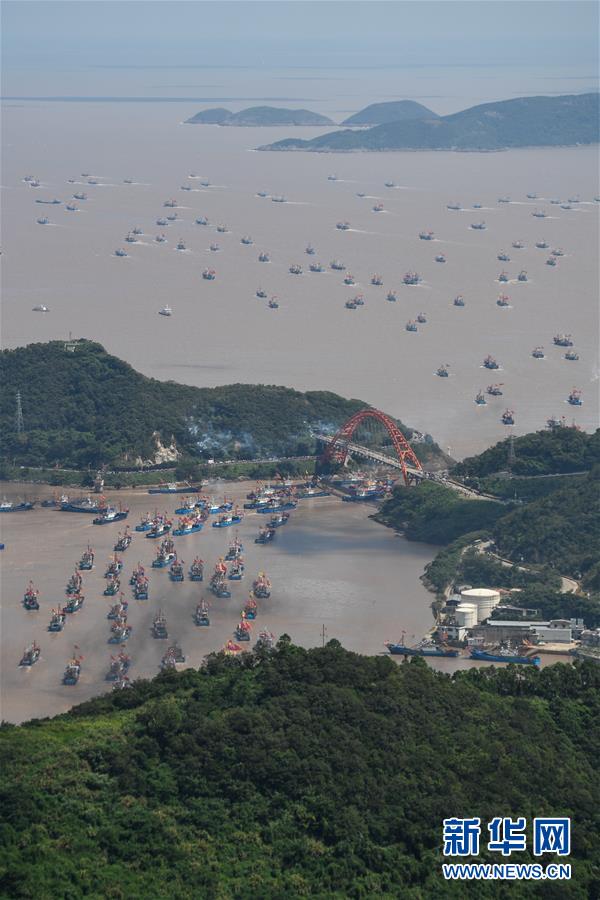 9月16日,大批渔船列队从全国六大中心渔港之一的浙江宁波象山石浦渔港驶出,准备入海。 新华社记者 黄宗治 摄