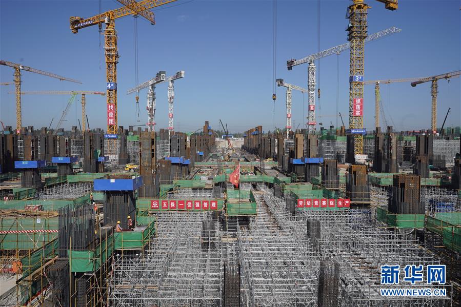 8月27日,工人在雄安站施工。新华社记者邢广利摄