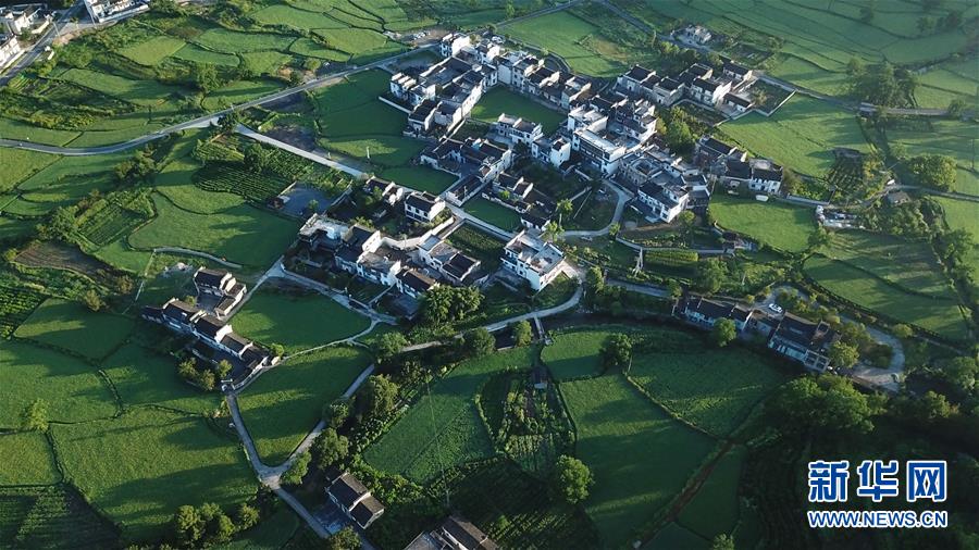 这是8月4日无人机拍摄的安徽黟县宏村风景区附近的村庄。新华社记者张端摄