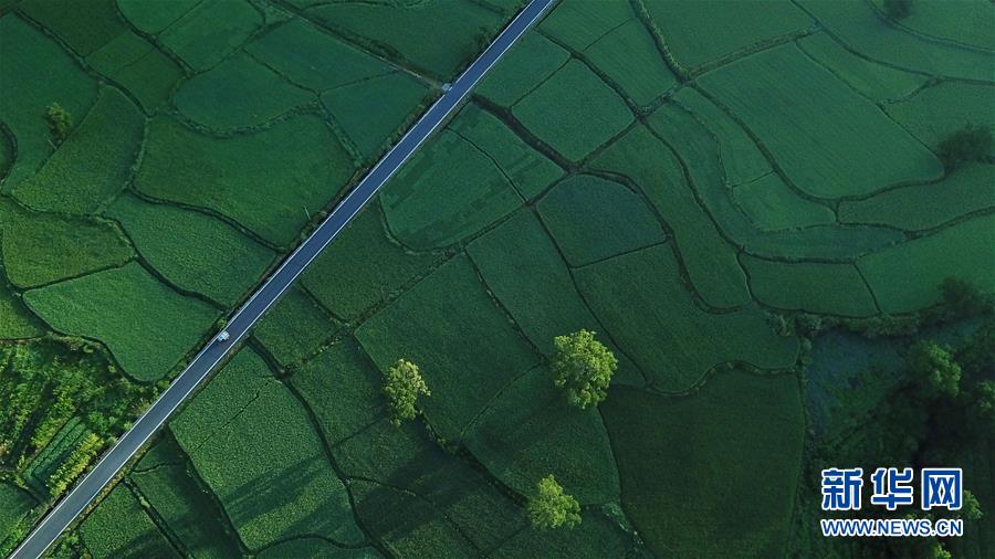这是8月4日无人机拍摄的安徽黟县宏村风景区附近的农田。新华社记者张端摄