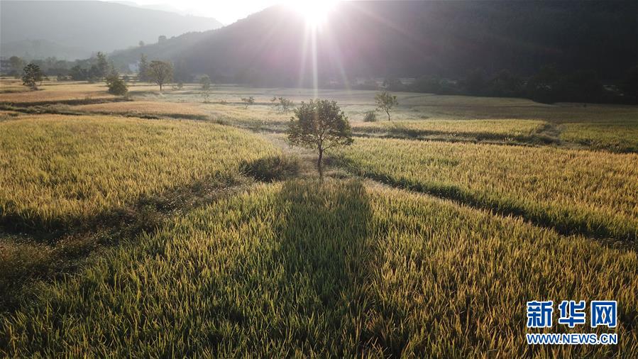 这是9月19日无人机拍摄的安徽黟县宏村附近的农田。新华社记者张端摄