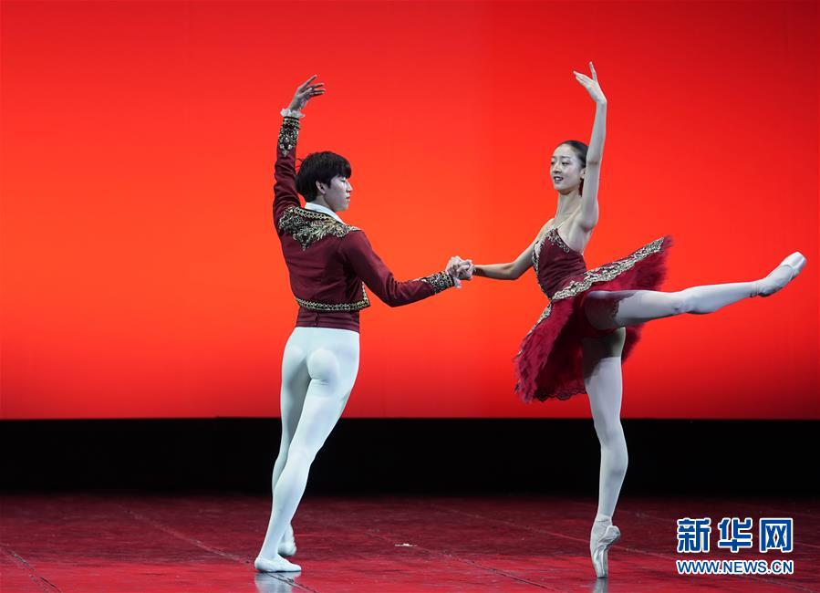 9月19日,演员邱芸庭(右)、武思聪表演芭蕾舞《堂·吉诃德》选段。 新华社记者 金良快 摄