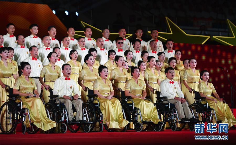 9月22日,海南省残疾人联合会合唱团演唱歌曲《没有共产党就没有新中国》。 新华社记者 郭程 摄