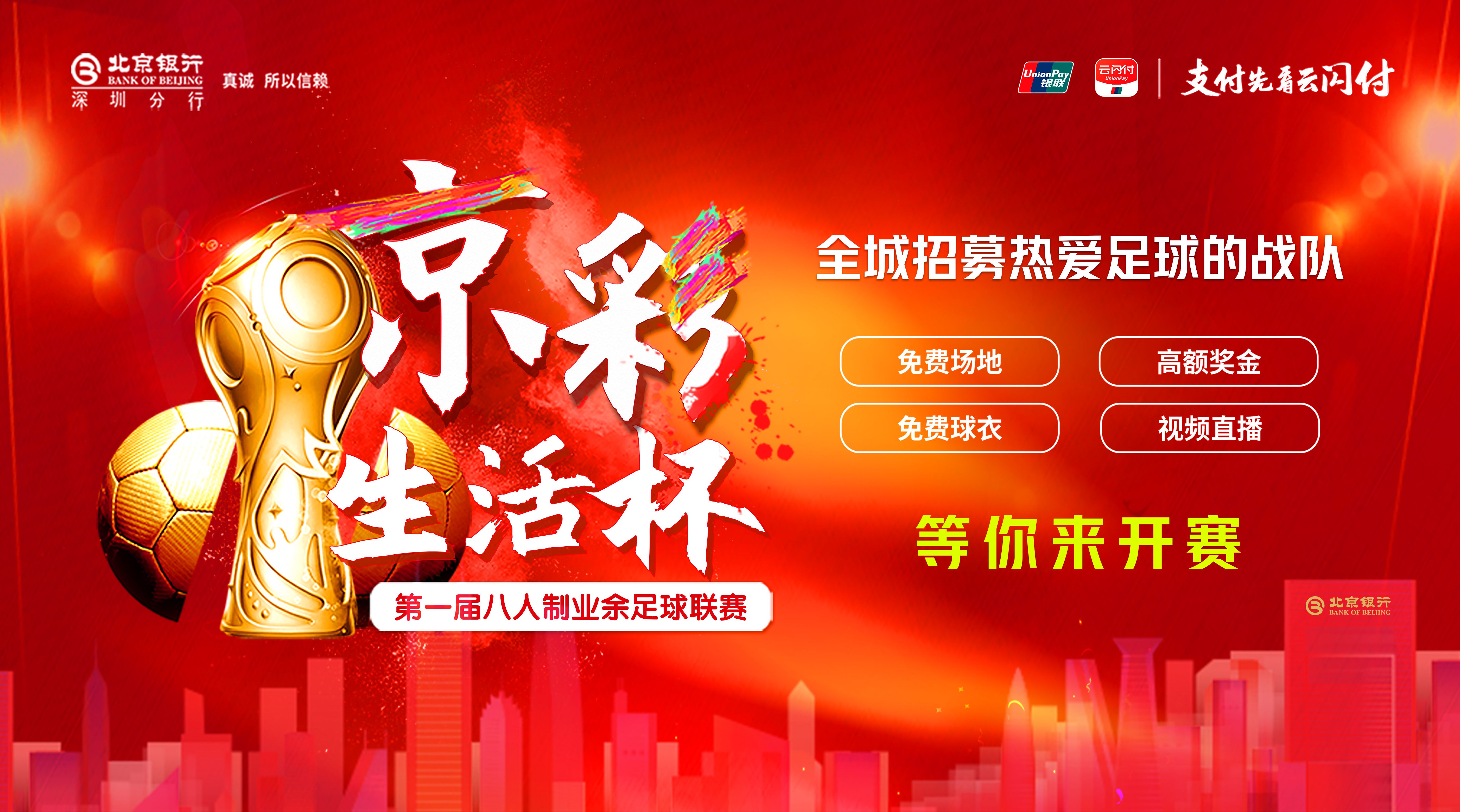 北京银行深圳分行第一届“京彩生活杯”八人制业余足球联赛全城招募中!