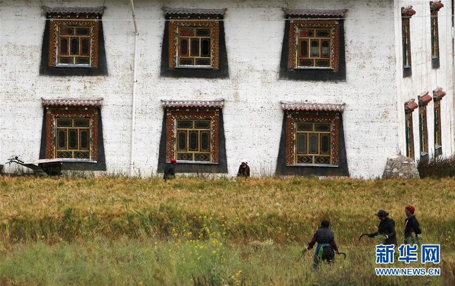 在普达措国家公园内,洛茸村民小组村民在田间劳动(9月16日摄)。 新华社记者 张誉东 摄