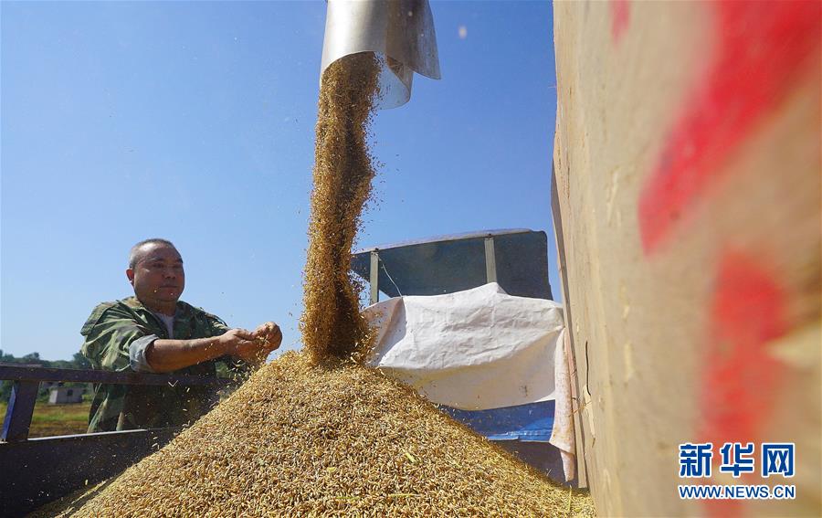 9月23日,在江西省井冈山市坳里乡,文龙才在收获井冈红米。 新华社记者 彭昭之 摄