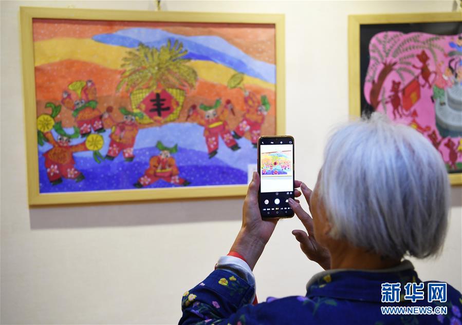 9月23日,观众在展览现场拍照。 当日是“中国农民丰收节”,山西省运城市举办首届农民画展,共展出运城市各县(区)28位农民画家的80余幅作品,吸引众多市民前来参观。 新华社记者 杨晨光 摄
