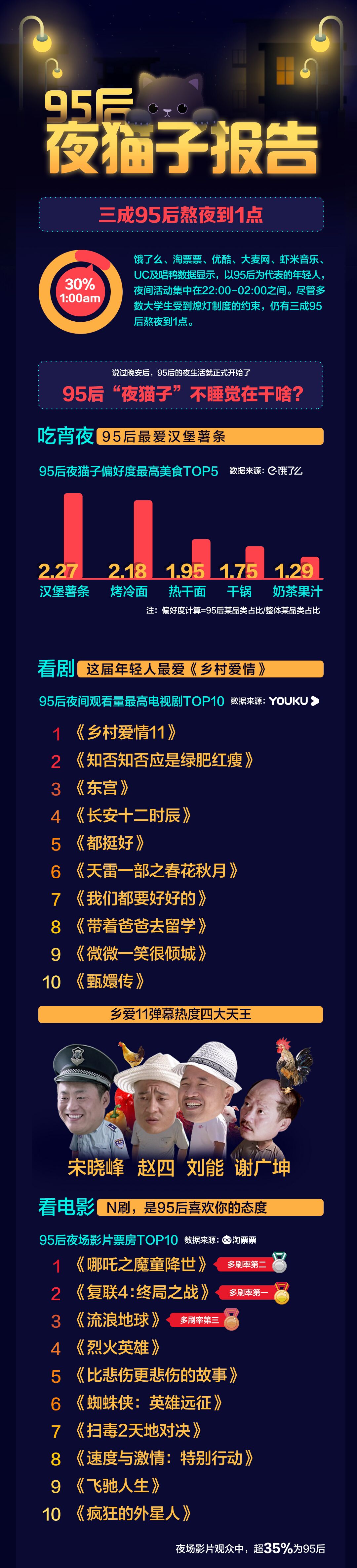 《95后夜猫子报告》显示,95后年轻人在夜间观影、追剧、看演出等文化消费领域表现十分活跃;南方城市的95后夜猫子在各项消费活动中表现尤其突出。