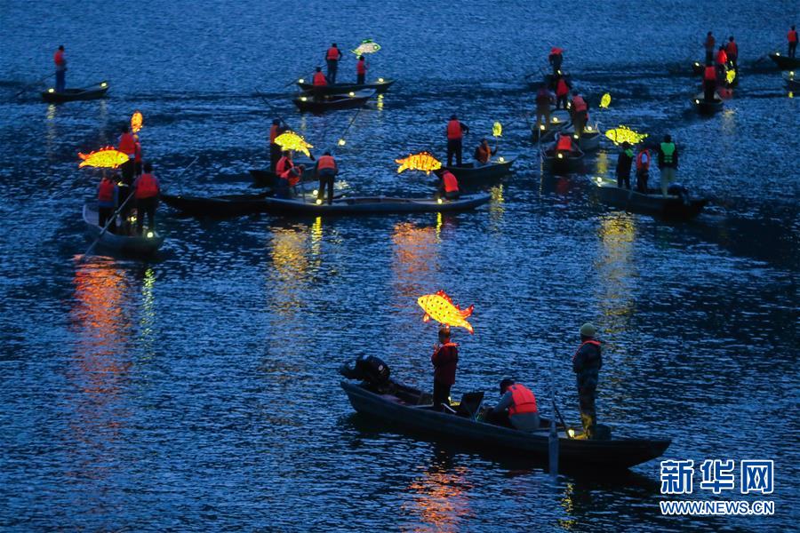 9月25日,在宋村乡云源港的水面上,渔民划着渔船,船头点亮渔灯,构成一幅“渔舟唱晚、万家灯火”的美丽图景(无人机拍摄)。 近年来,浙江省杭州市淳安县宋村乡积极发展乡村旅游,打造渔家元素特色景观,助力乡村振兴建设。目前,宋村乡依托山水景观和渔家文化,带动了当地精品民宿和集沙滩嬉水、自助烧烤、农事体验、民俗摄影采风为一体的特色旅游发展。2019年1月初至7月底,全乡接待游客10万人次,实现旅游经济收入1300万元。 新华社记者 徐昱 摄