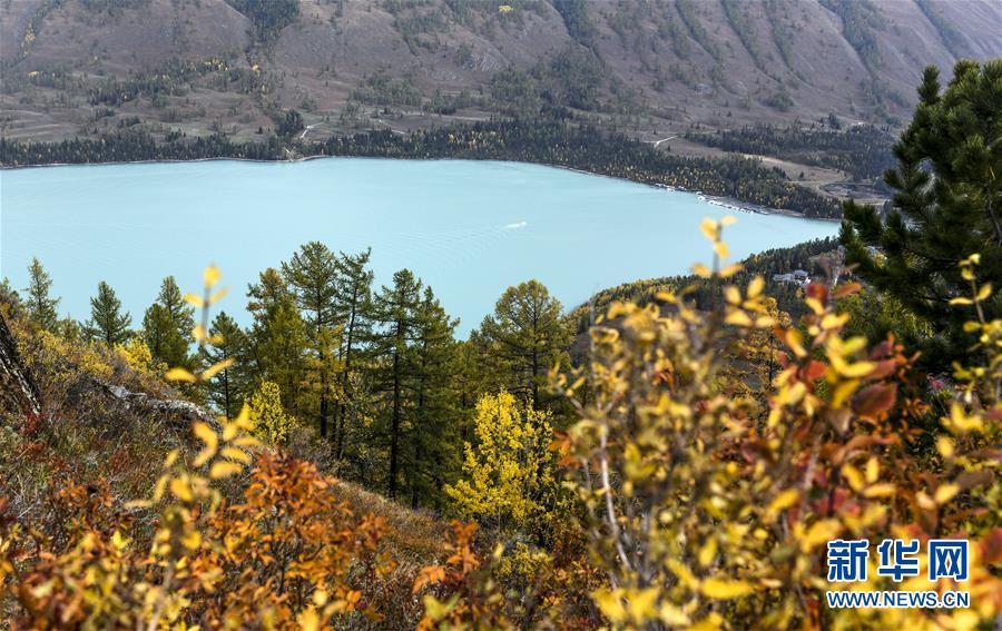 9月23日拍摄的喀纳斯景区风光。 金秋时节,位于新疆阿勒泰地区的喀纳斯景区内的林木与喀纳斯湖相互映衬,美不胜收。 新华社记者 王菲 摄