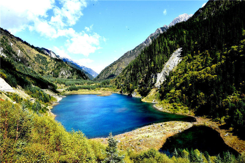 2019年9月25日,在九寨沟景区即将试开园之际,记者再次探访世界自然遗产地九寨沟。经过两年灾后恢复重建,九寨沟展现出强大的生态恢复能力,地震后受损的美景已经慢慢归来,九寨沟景区85%的区域已基本具备开放条件,此次九寨沟景区拟开放的景点中既有美丽的诺日朗瀑布,也有新景点双龙海瀑布。图为上季节海风光。安源(四川分社)/中新社/视觉中国 编辑/陈进