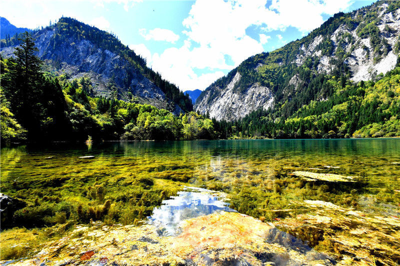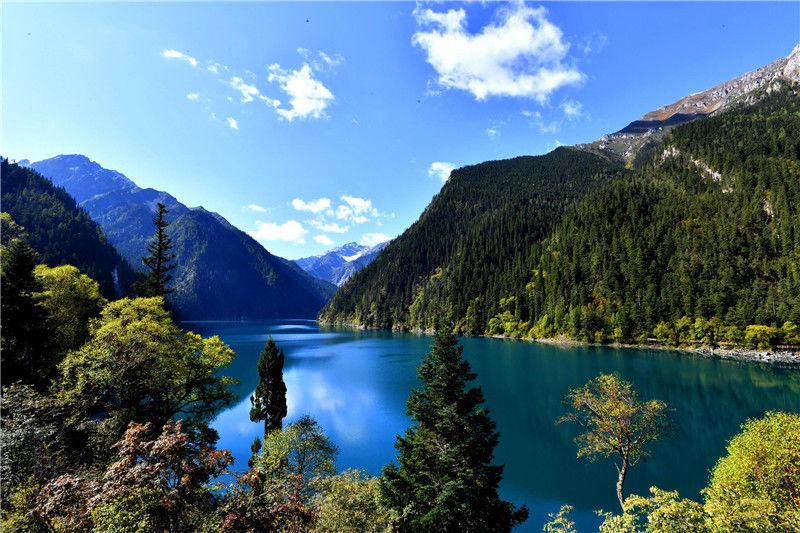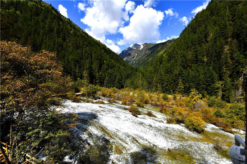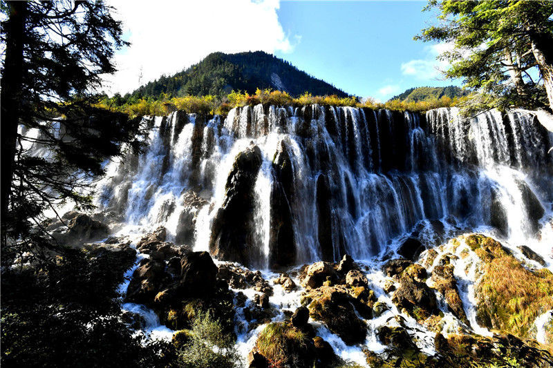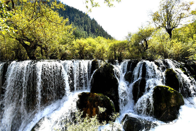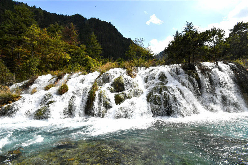 2019年9月25日,在九寨沟景区即将试开园之际,记者再次探访世界自然遗产地九寨沟。经过两年灾后恢复重建,九寨沟展现出强大的生态恢复能力,地震后受损的美景已经慢慢归来,九寨沟景区85%的区域已基本具备开放条件,此次九寨沟景区拟开放的景点中既有美丽的诺日朗瀑布,也有新景点双龙海瀑布。图为上季节海风光。安源(四川分社)/中新社/视觉中国 编辑/陈进