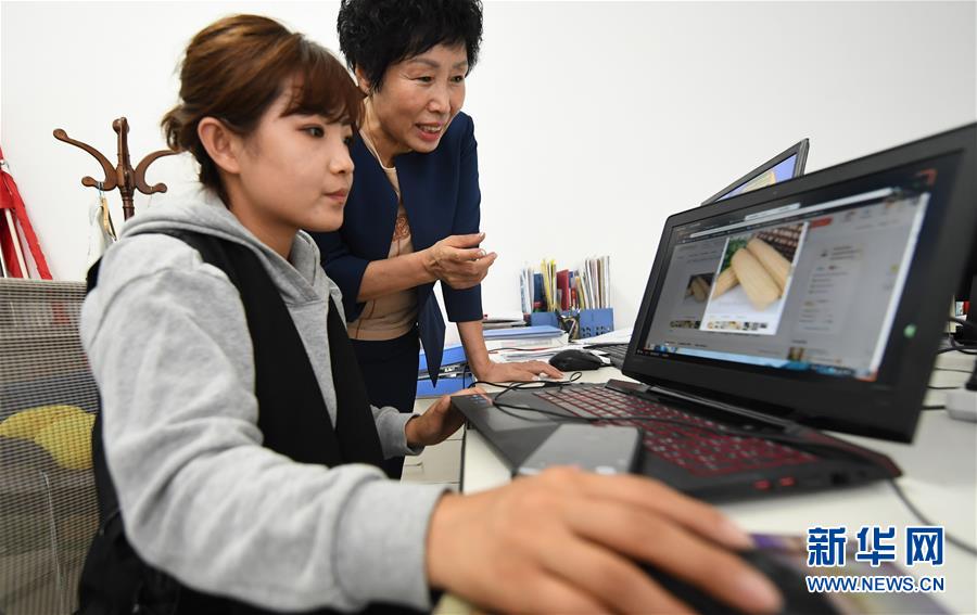 9月26日,隋书侠(右)在查看产品的海外市场销售情况。 新华社记者 王昊飞 摄