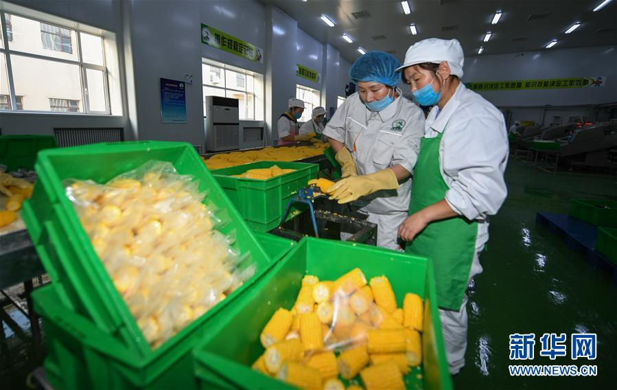 9月26日,隋书侠(右)在加工车间查看玉米杀菌情况。 新华社记者 王昊飞 摄