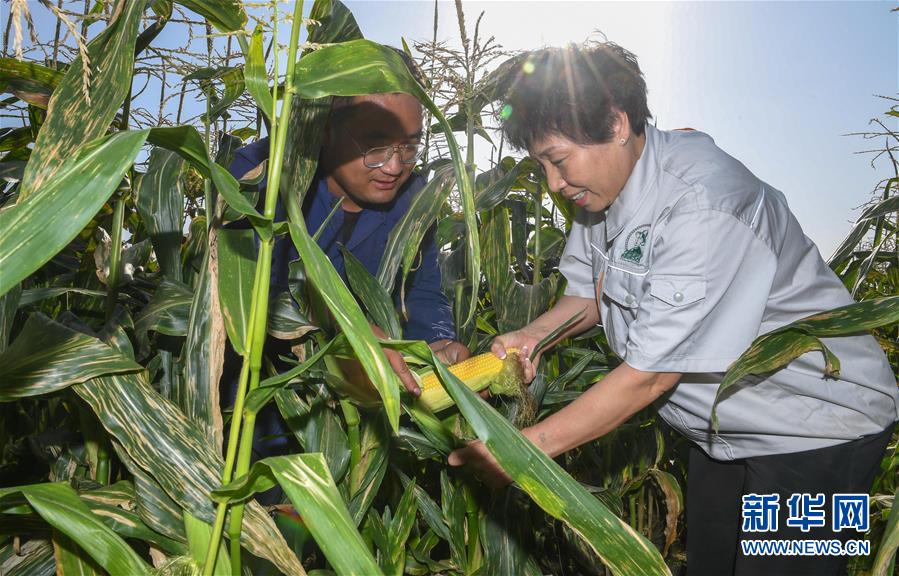 9月26日,隋书侠(右)在种植基地查看玉米品质。 新华社记者 王昊飞 摄