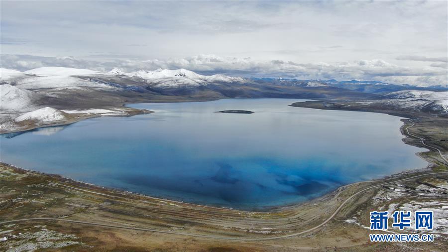 普姆雍错湖紧挨着公路,是自驾游的理想目的地(9月19日无人机拍摄)。新华社记者晋美多吉摄