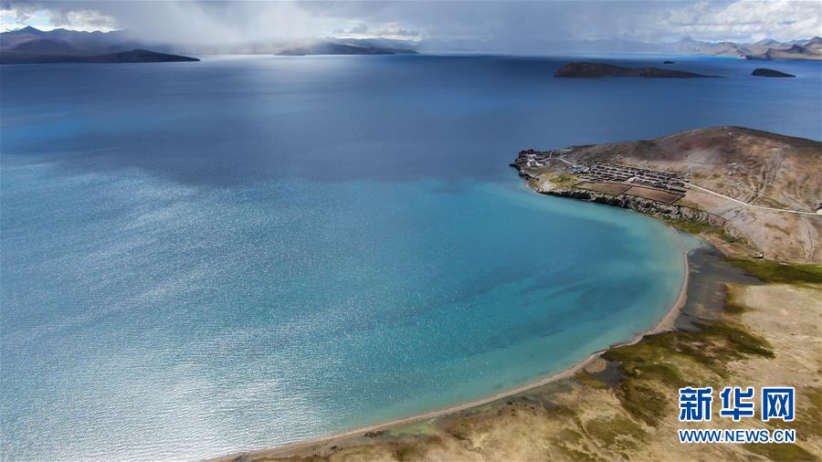 这是普姆雍错湖边的堆瓦村(9月19日无人机拍摄)。普姆雍错位于西藏山南市浪卡子县境内,海拔五千多米,在周围雪山融水的滋润和阳光的照耀下,美若少女。新华社记者晋美多吉摄
