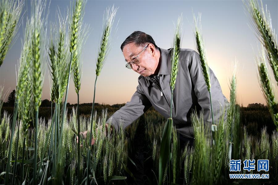 李振声院士在中国科学院遗传与发育生物学研究所农业资源研究中心南皮生态农业试验站(中科院南皮站)的试验田里(2014年5月5日摄)。新华社记者 金立旺 摄