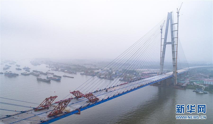 武汉青山长江大桥顺利合龙(5月16日无人机拍摄)。新华社记者 肖艺九 摄
