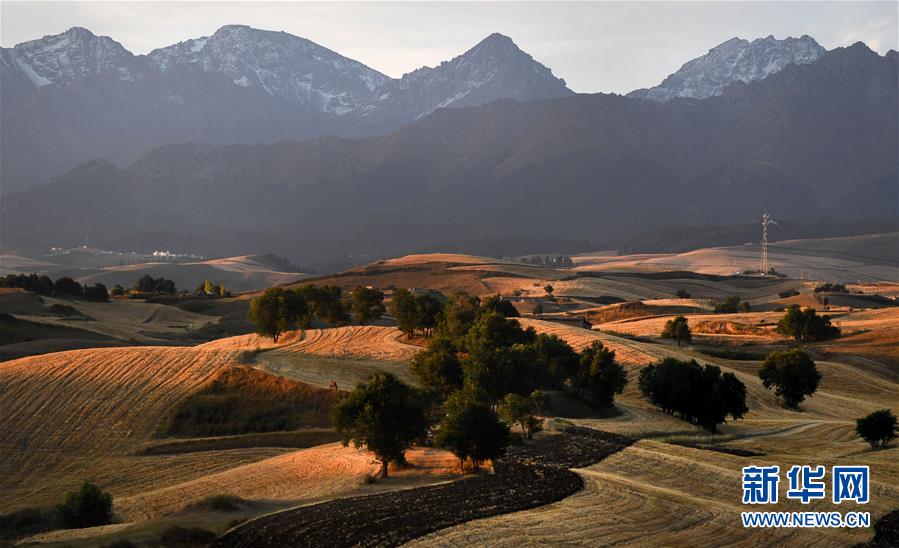 这是金秋时节的新疆江布拉克麦田美景(2017年9月10日摄)。新华社记者王菲摄