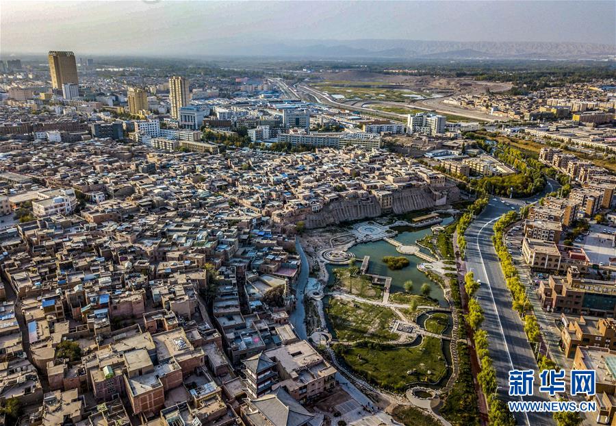 这是从空中俯瞰新疆喀什古城(2017年10月22日无人机拍摄)。新华社记者江文耀摄