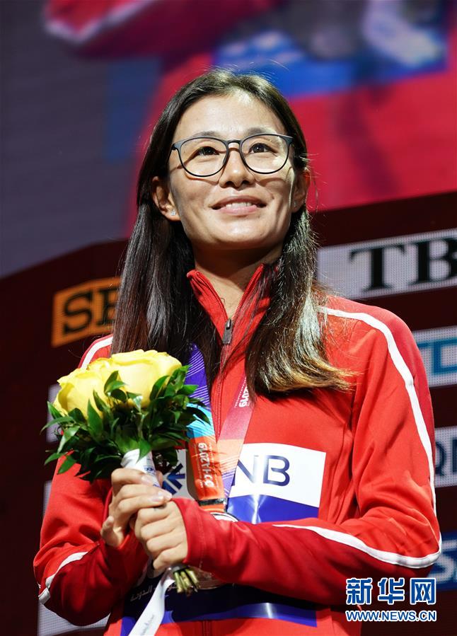 9月30日,亚军中国选手切阳什姐在颁奖仪式上。新华社记者 徐速绘 摄