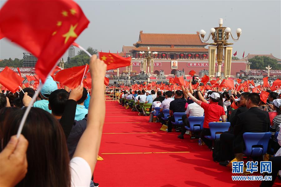 10月1日上午,庆祝中华人民共和国成立70周年大会在北京天安门广场隆重举行。这是现场的观众。新华社记者鞠焕宗摄