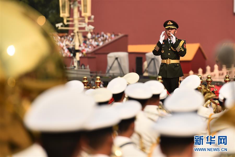 10月1日上午,庆祝中华人民共和国成立70周年大会在北京天安门广场隆重举行。这是解放军联合军乐团在演奏。新华社记者李贺摄