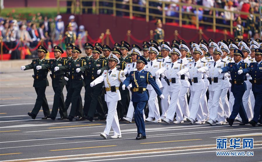 10月1日上午,庆祝中华人民共和国成立70周年大会在北京天安门广场隆重举行。这是仪仗方队。新华社记者李尕摄