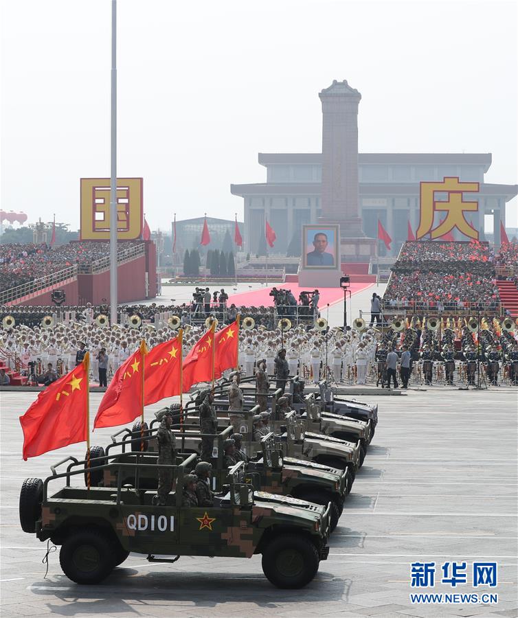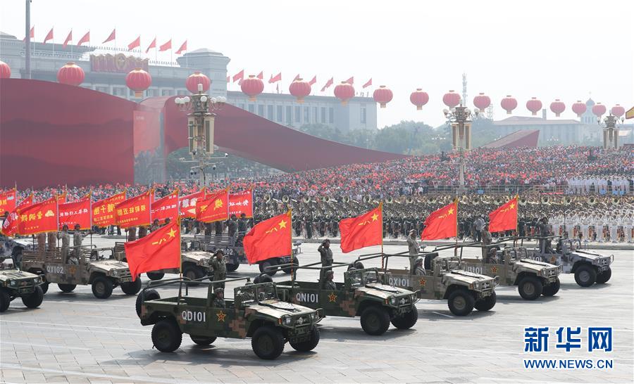 10月1日上午,庆祝中华人民共和国成立70周年大会在北京天安门广场隆重举行。这是战旗方队接受检阅。新华社记者殷刚摄
