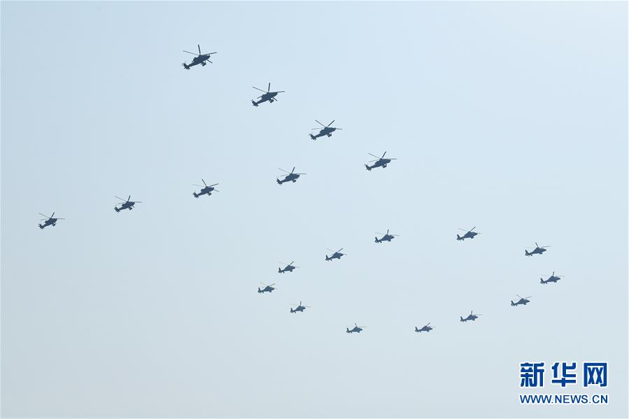 10月1日上午,庆祝中华人民共和国成立70周年大会在北京天安门广场隆重举行。这是20架直升机在空中组成“70”字样。新华社记者薛玉斌摄