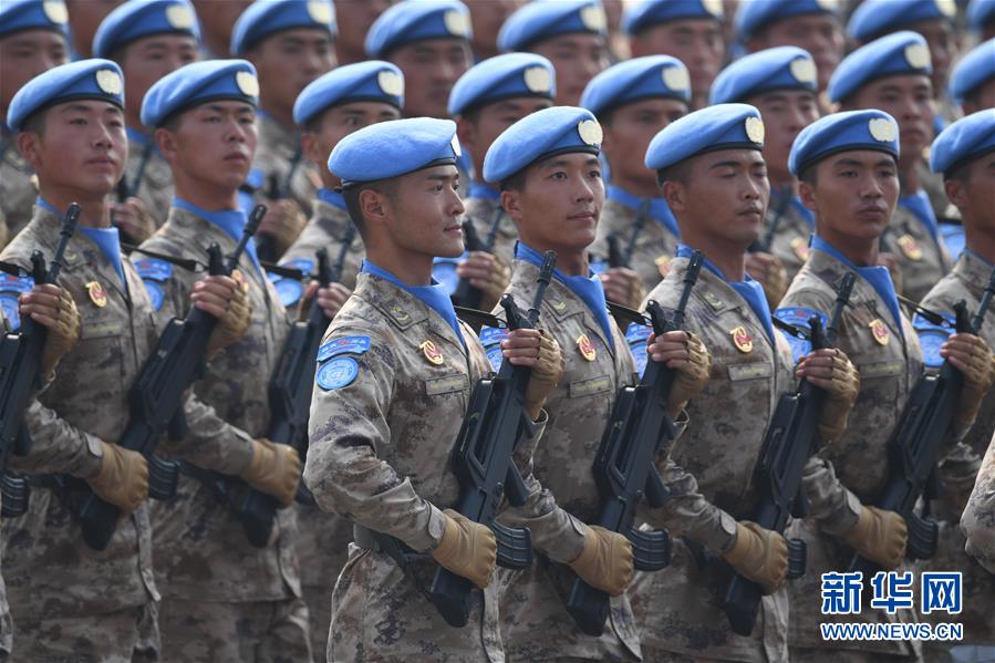 10月1日上午,庆祝中华人民共和国成立70周年大会在北京天安门广场隆重举行。这是受阅的维和部队方队。新华社记者陶明摄