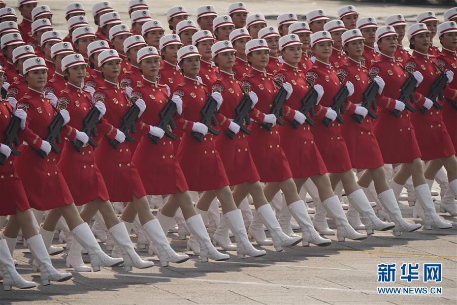 10月1日上午,庆祝中华人民共和国成立70周年大会在北京天安门广场隆重举行。这是受阅的女兵方队。新华社记者武巍摄
