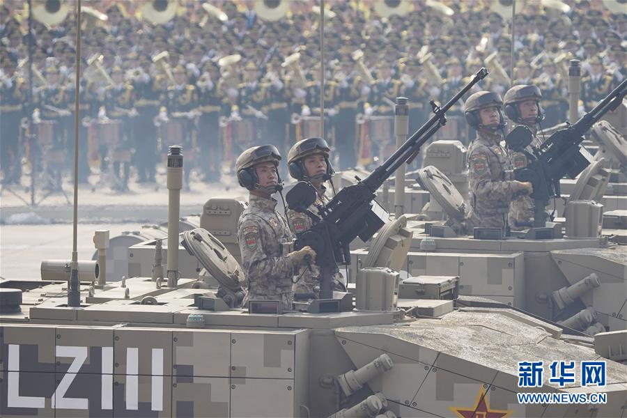 10月1日上午,庆祝中华人民共和国成立70周年大会在北京天安门广场隆重举行。这是坦克方队接受检阅。新华社记者邢广利摄