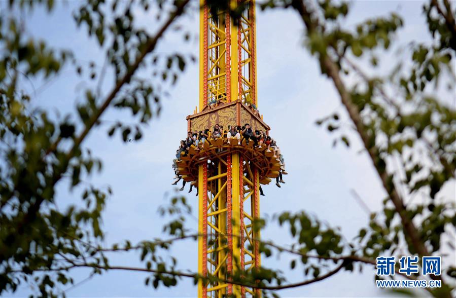 10月3日,游客在河北邯郸市磁县方特主题公园内游玩。 当日是国庆假期第三天,人们纷纷走出家门,乐享假期。 新华社记者 王晓 摄