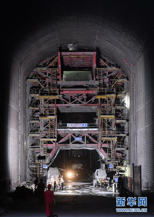 这是乌东德水电站泄洪洞中的钢模台车施工现场(5月31日摄)。新华社记者陈晔华摄