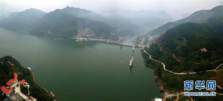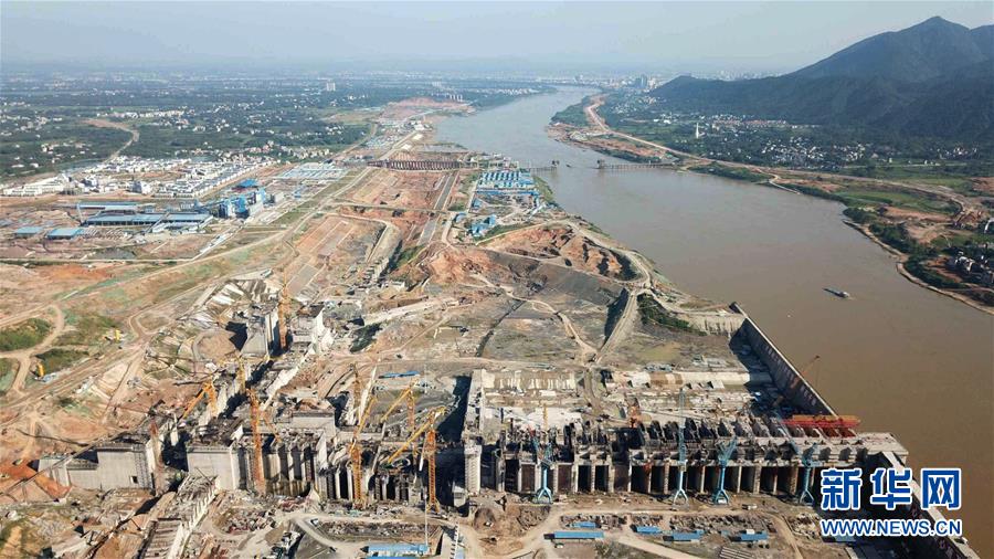 这是用无人机拍摄的建设中的乌东德水电站全景(5月30日摄)。新华社记者陈晔华摄