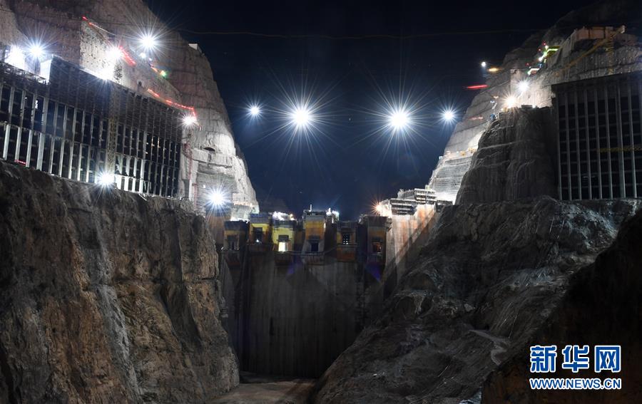 这是正在紧张施工的乌东德水电站大坝主体工程夜景(5月31日摄)。新华社记者陈晔华摄